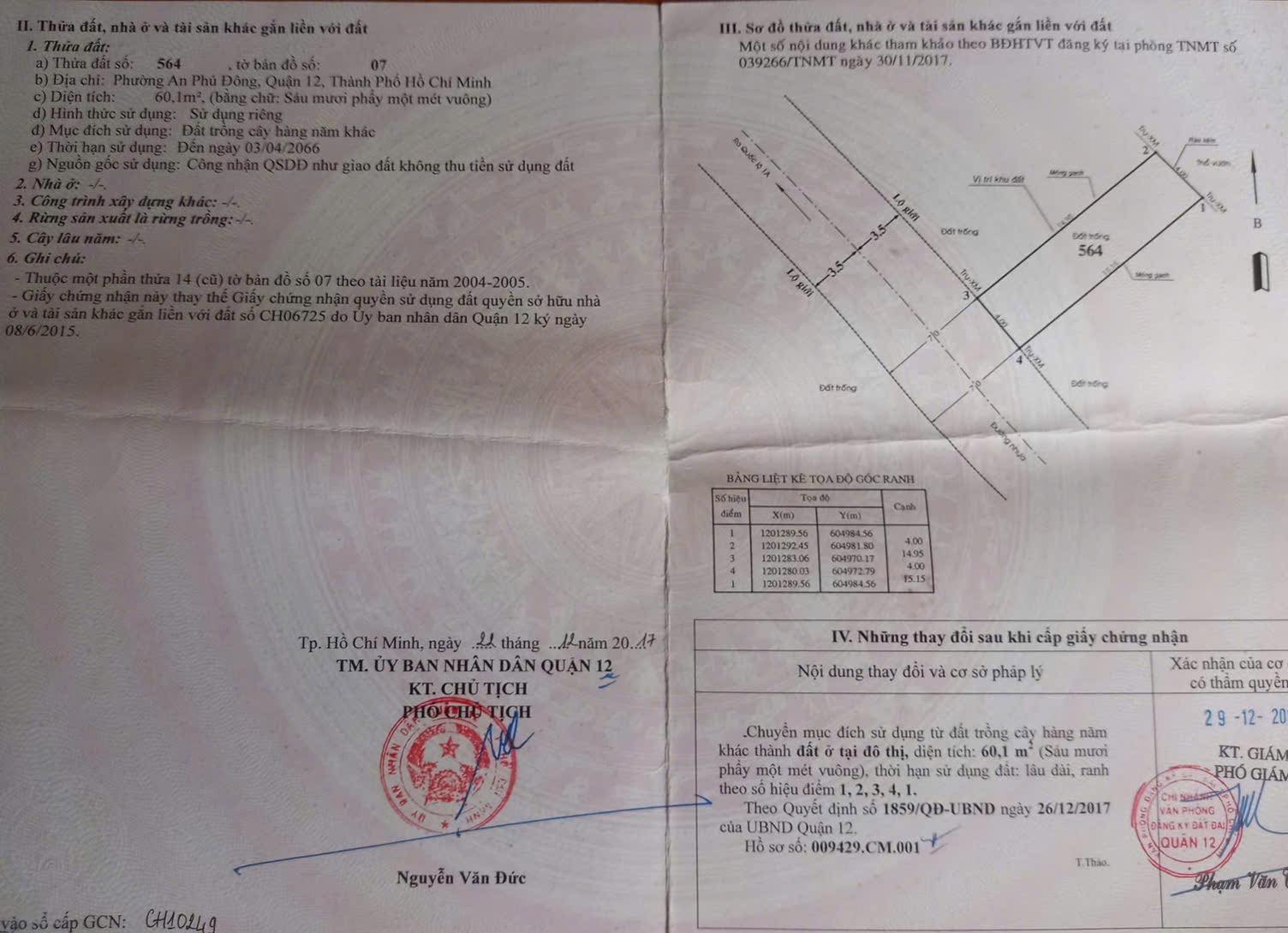 BÁN ĐẤT GIÁ TỐT – AN PHÚ ĐÔNG 27, GẦN CẦU VƯỢT BÌNH PHƯỚC