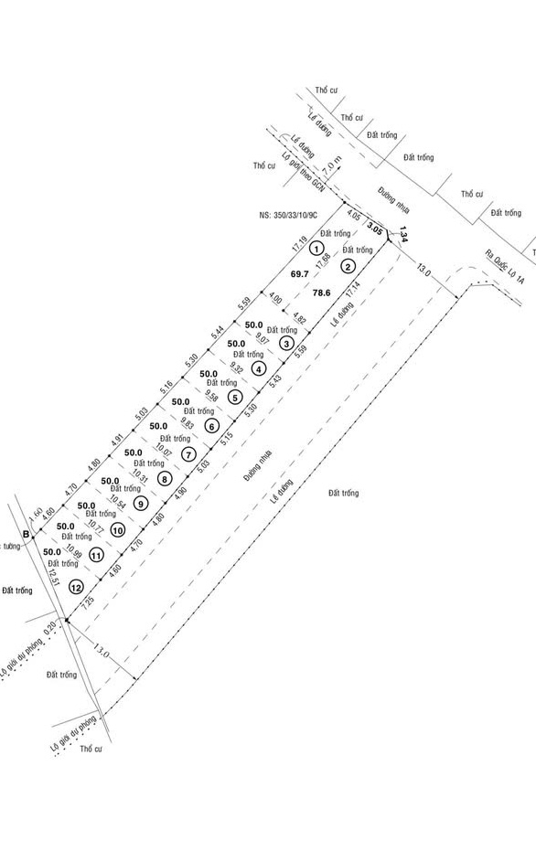 - Đường dự phóng 13m, thông trực tiếp ra Quốc lộ 1A
